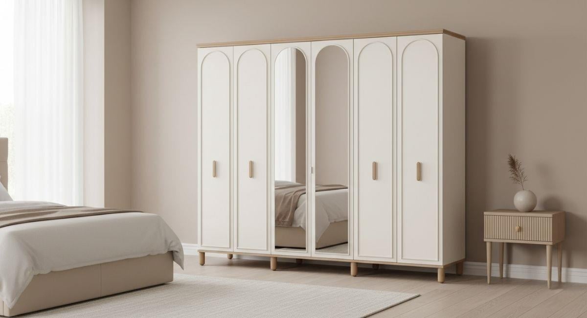 Bohemstar 6 Kapaklı Gardırop, geniş saklama alanı ve şık tasarımıyla yatak odanıza estetik bir katkı sağlar. Sağlam ve kaliteli malzemelerle üretilmiş olan bu gardırop, uzun yıllar boyunca güvenle kullanılabilir. Stoplu menteşe sistemleri sayesinde kapaklar sessiz ve yumuşak bir şekilde kapanır. Modern çizgileri ve fonksiyonel yapısıyla hem düzen hem de şıklık sunar.