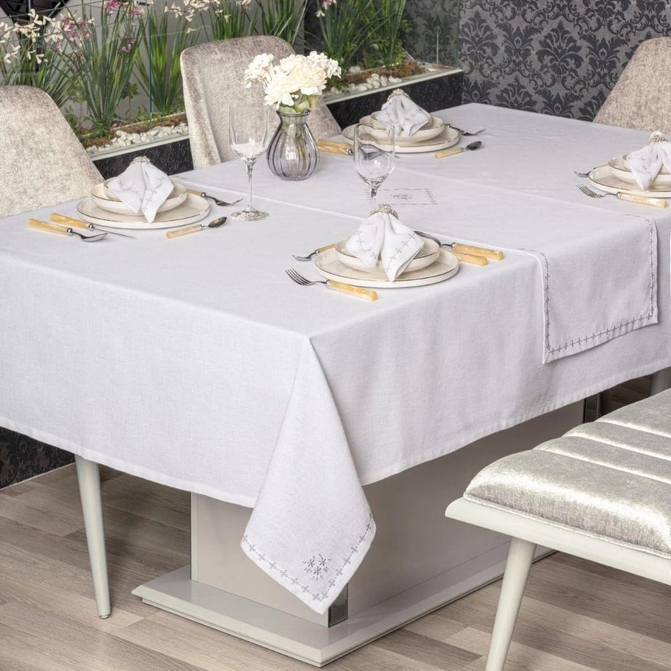 Cotton Box Keten Masa Örtüsü Takımı Pera Beyaz 175x240 (Ç0058413)
