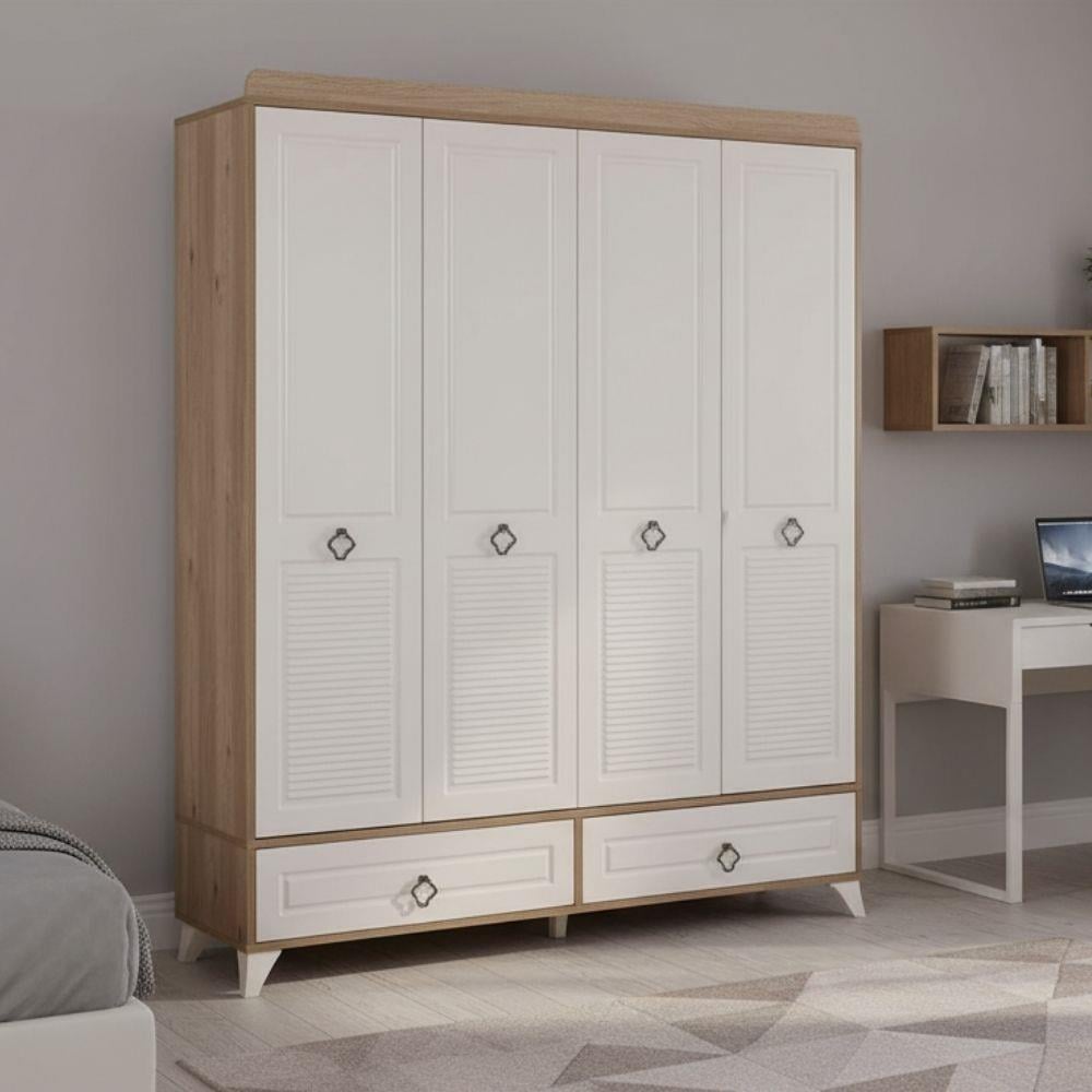 Bu gardırop, dayanıklı malzemelerle üretilmiş olup 4 kapaklı tasarımı ile büyük bir depolama alanı sağlar. Ayrıca, altta bulunan 2 çekmece, küçük eşyalarınızı düzenli bir şekilde saklamanıza yardımcı olur.