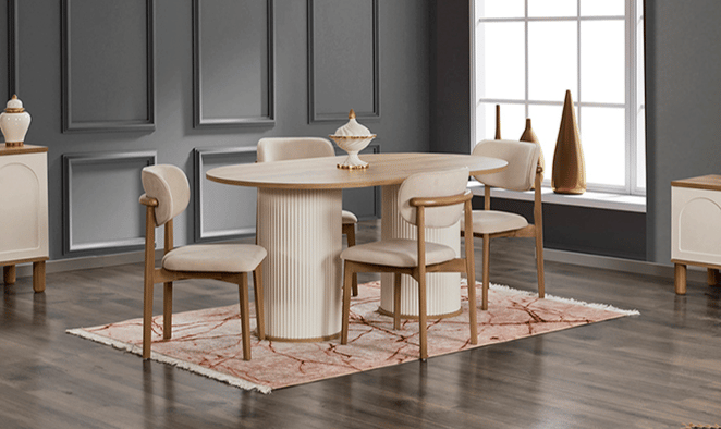 M289 Buse Yemek Masası – Krem Zarafeti, Yuvarlak Ayaklarla Modern Şıklık
