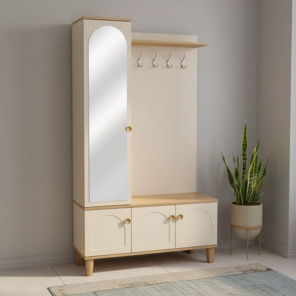 Geniş askılık alanları, çoklu raf sistemi ve kapaklı dolap bölmeleri sayesinde mont, ayakkabı, çanta ve aksesuarlarınızı düzenli bir şekilde saklamanıza olanak tanır. Dayanıklı malzeme yapısı ve kaliteli işçiliğiyle uzun ömürlü kullanım vadeden DM150, doğal dokulu yüzeyiyle dikkat çeker.