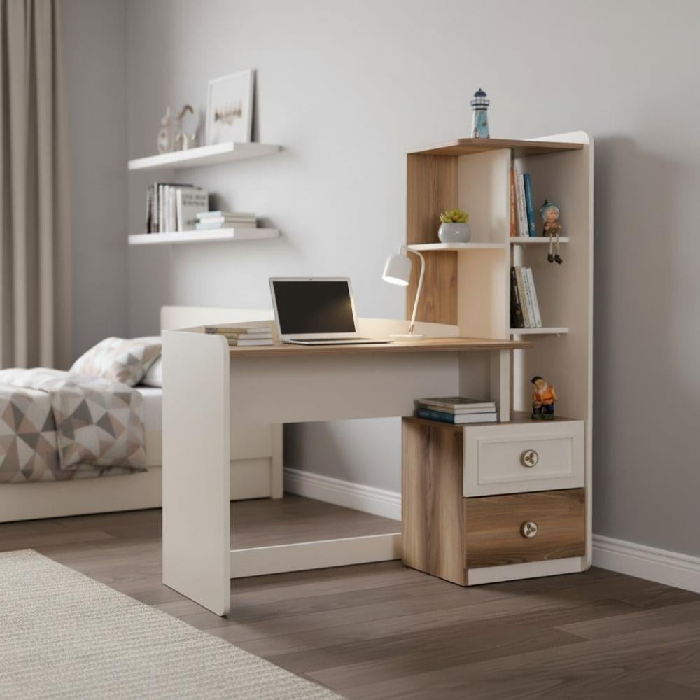 DM347 Irmak Genç Çalışma Masası, modern tasarımı ve geniş kullanım alanı ile genç odaları için hem şık hem de işlevsel bir çözümdür. Kitaplarınızı, defterlerinizi ve bilgisayarınızı rahatça yerleştirebileceğiniz yapısıyla düzenli bir çalışma ortamı oluşturur. Üst kısmında yer alan rafları sayesinde depolama alanı artarken, geniş masa yüzeyi de konforlu bir çalışma deneyimi sunar.