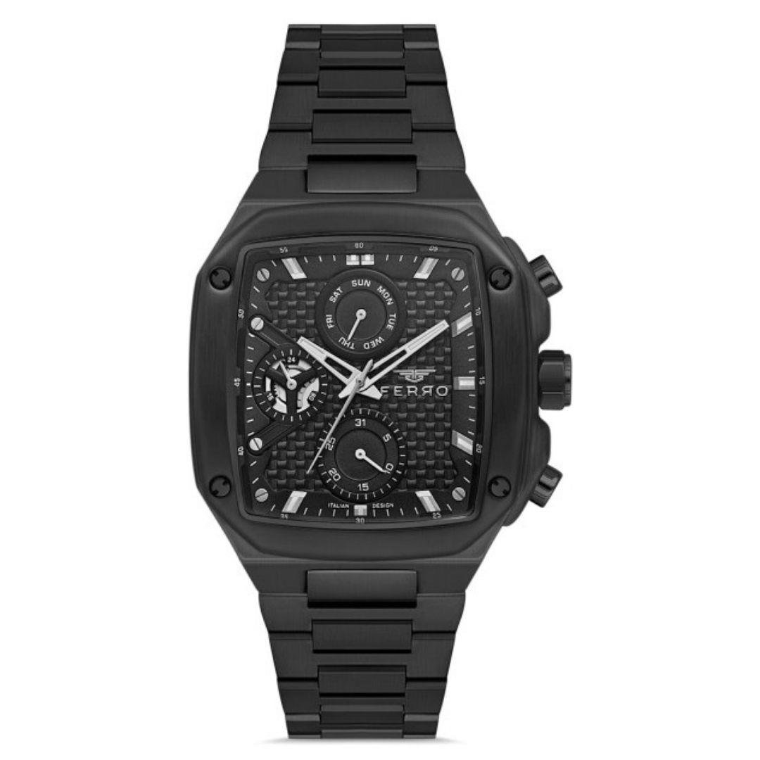 Ferro FR.FM11485A-G Erkek Kol Saati Günlük şıklığı sade ve güçlü bir tasarımla tamamlamak isteyen erkekler için tasarlanan Ferro FR.FM11485A-G, siyah çelik kasa ve kayışı ile her ortamda net bir duruş sergiler. Zamansız tasarımı ve pratik kullanımıyla hem iş hayatında hem günlük kombinlerde güvenle tercih edilir. Neden Ferro FR.FM11485A-G? Quartz mekanizma sayesinde zamanı sürekli doğru gösterir, ekstra ayar gerektirmez. 40 mm kasa çapı, bilekte dengeli ve konforlu bir görünüm sunar. Çelik kasa ve çelik kayış, uzun ömürlü kullanım ve sağlamlık sağlar. Siyah analog kadran, sade ve maskülen bir stil oluşturur. Takvim fonksiyonu, günlük kullanımda pratiklik kazandırır. 3 ATM su geçirmezlik, el yıkama ve hafif su temaslarında güvenli kullanım sunar. Şıklık ve Konfor Bir Arada Minimal detayları ve tamamen siyah tasarımıyla Ferro FR.FM11485A-G, abartıdan uzak ama etkili bir saat arayan erkekler için ideal bir tercihtir. Metal ağırlığı ve dengeli kasa yapısı, gün boyu konforlu kullanım sağlar. Teknik Özellikler Özellik Detay Marka Ferro Cinsiyet Erkek Mekanizma Quartz Kasa Çapı 40 mm Kasa Şekli Yuvarlak Kasa Materyali Çelik Kasa Rengi Siyah Cam Tipi Mineral Cam Kadran Tipi Analog Kadran Rengi Siyah Kayış Tipi Çelik Kayış Rengi Siyah Su Geçirmezlik 3 ATM Takvim Var