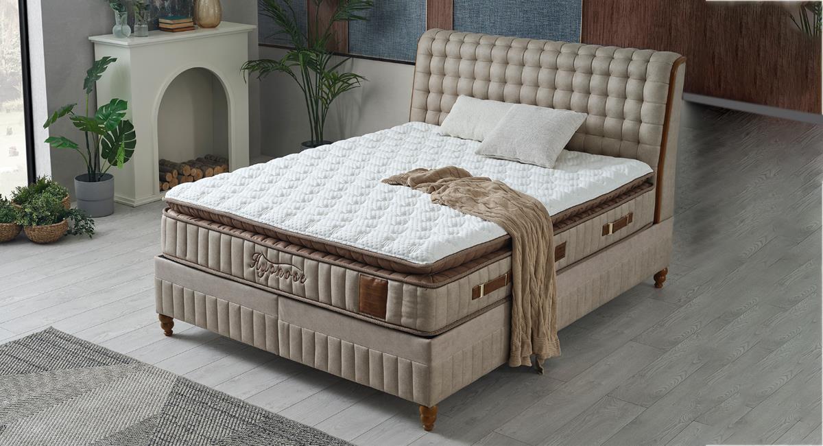 Hypnose 160'lık Baza, Başlık ve Yatak Seti – Şıklık ve Konforun Kahve Tonu