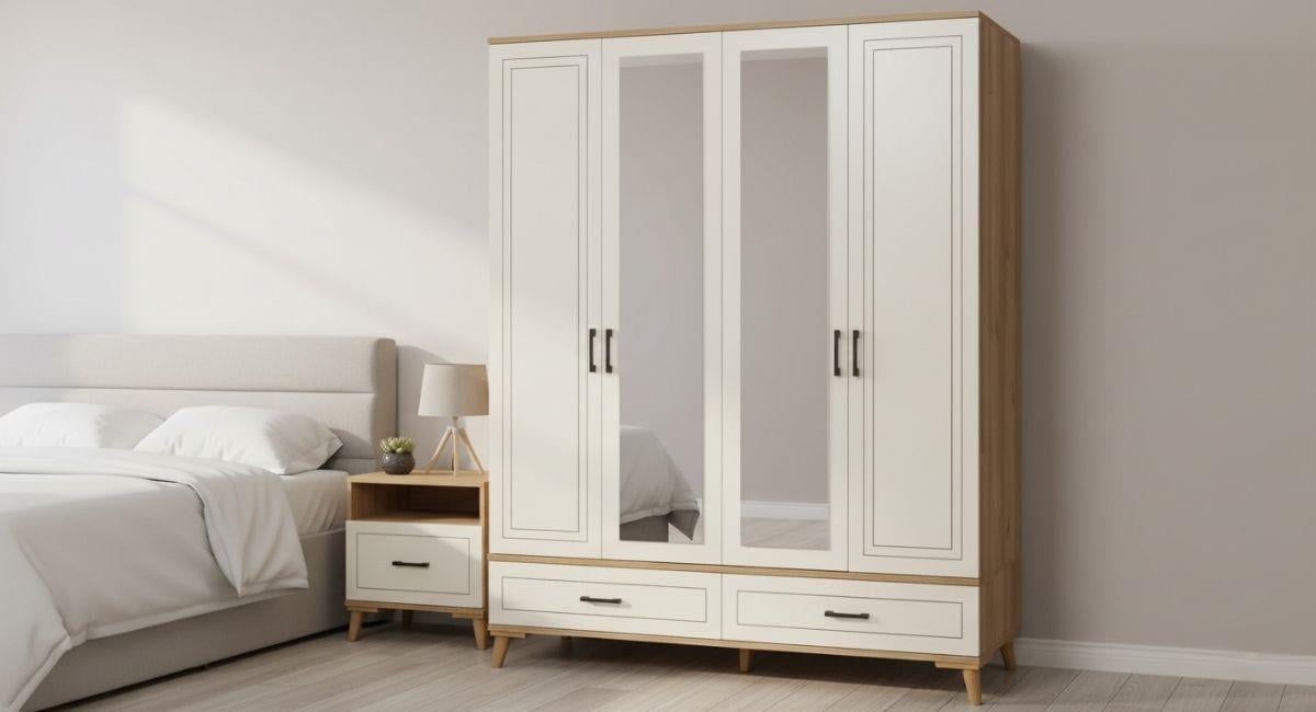 K114 Dört Kapılı Gardırop – Krem Kapaklarıyla Şık ve Fonksiyonel Depolama Çözümü