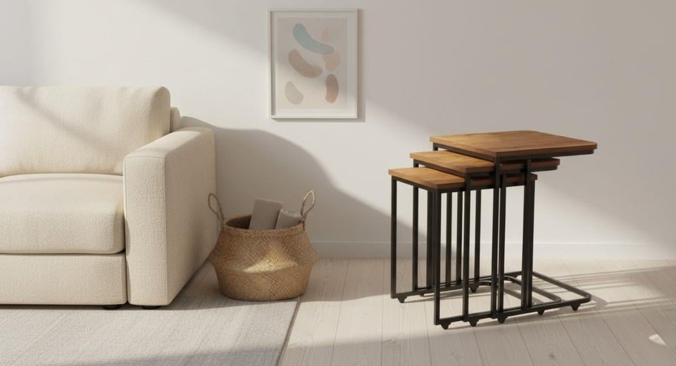 Necoline MZ-9405 CE Metal Zigon Atlantik Çam – Şık ve Kullanışlı Sehpa Seti