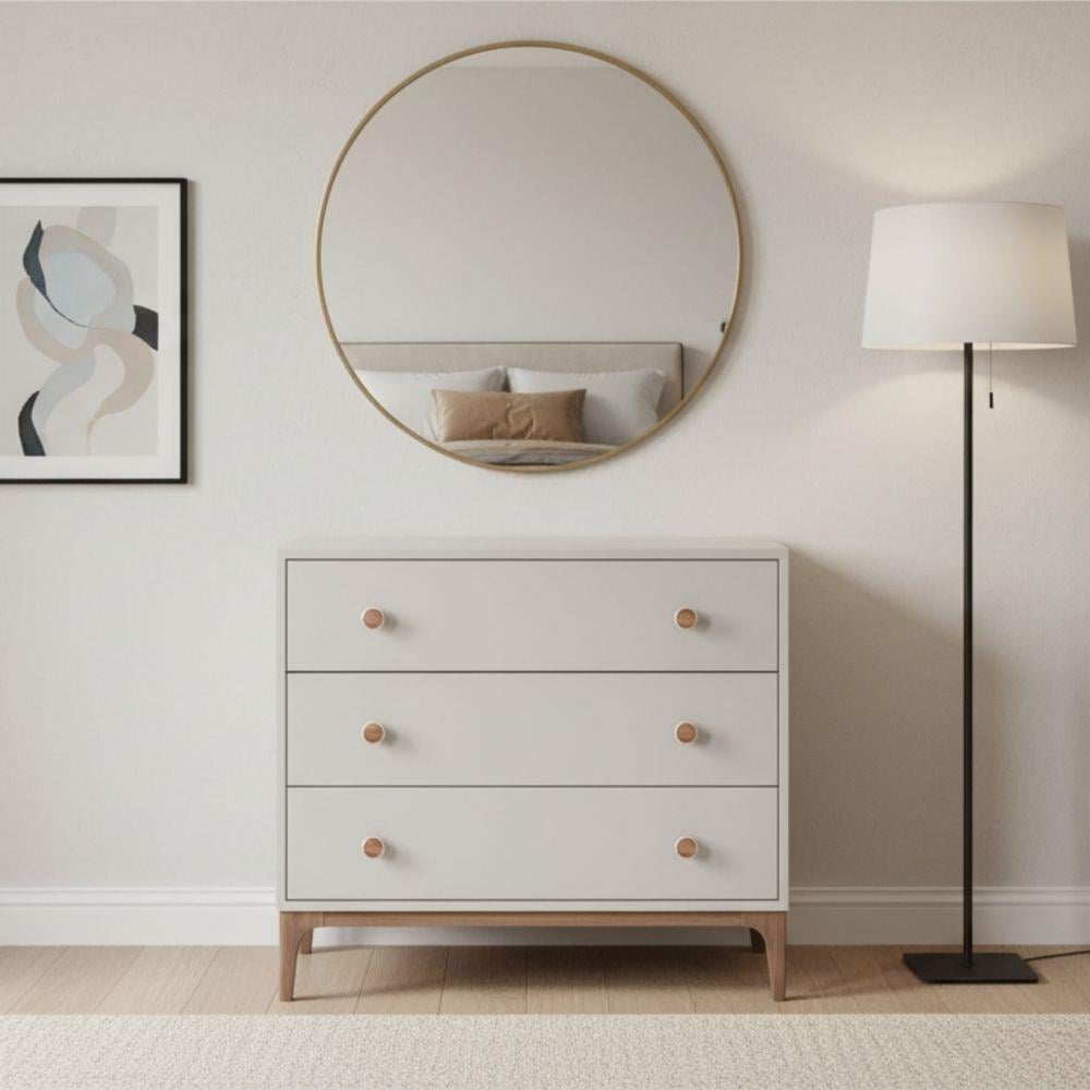 Polo Şifonyer 148270– 3 Çekmeceli, Beyaz Gövde, Ahşap Kulplu ve Ayaklı Şık Tasarım