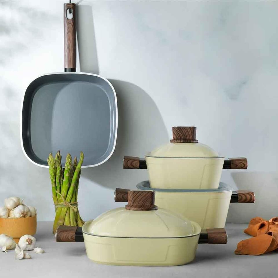 Schafer 1S0845-21003-KRM01 Challenger 7 Parça Seramik Tencere Seti-Krem