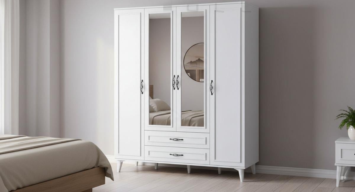 Sedef 4 Kapılı Gardırop Beyaz – Geniş ve Şık Depolama Çözümü
