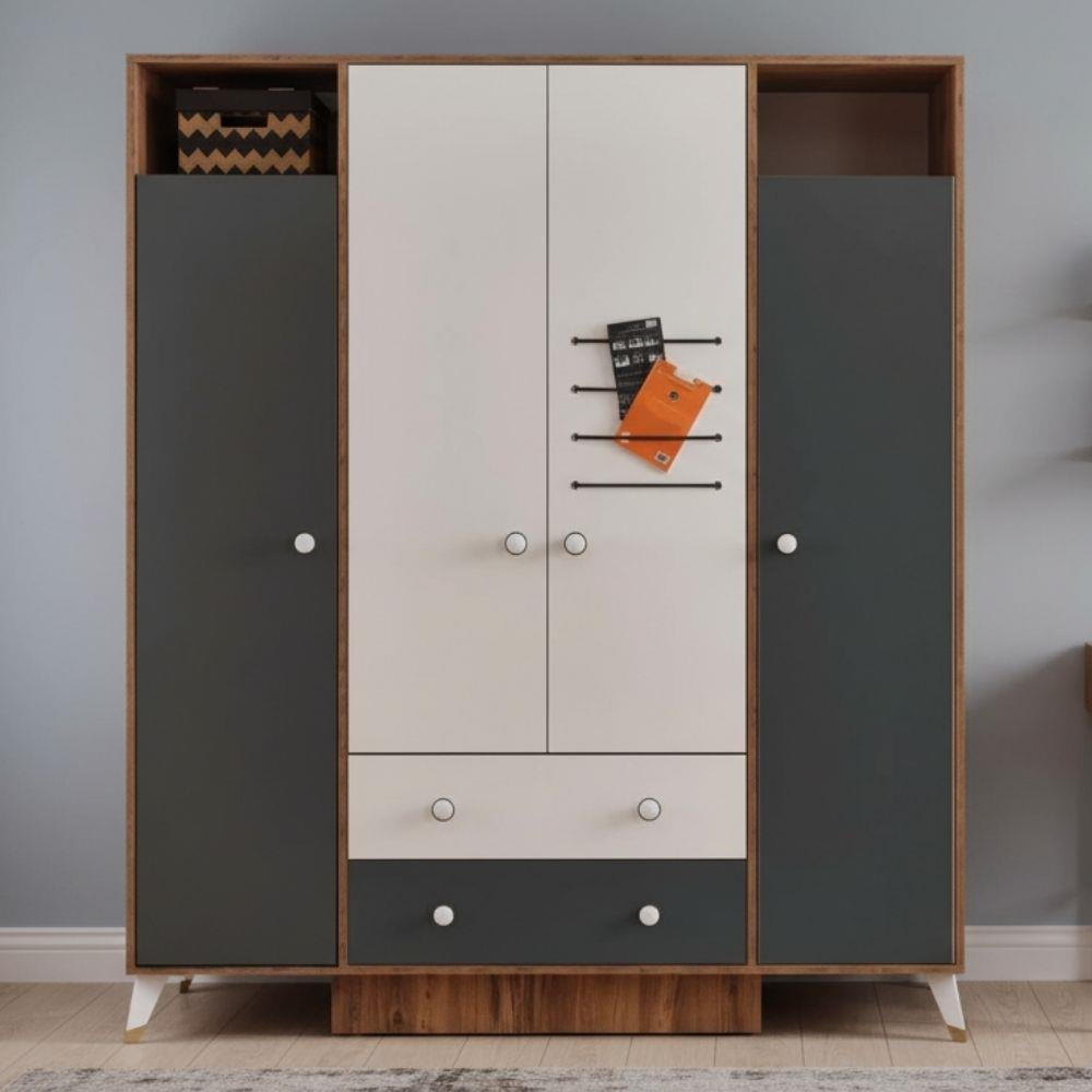 Smart Genç 4 Kapaklı Gardırop, genç odalarında hem düzeni hem de şıklığı bir araya getiren fonksiyonel bir mobilya parçasıdır. Sağlam malzeme yapısı sayesinde uzun yıllar boyunca güvenle kullanılabilir. Estetik ve çağdaş tasarımı sayesinde her odaya zarif bir dokunuş katar. Stoplu menteşe sistemiyle donatılmış kapakları sessiz ve kolay kapanarak günlük kullanımda maksimum konfor sağlar.