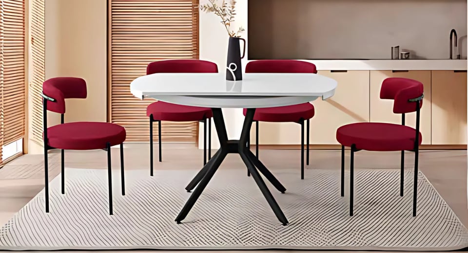 Zarif tasarımı ve göz alıcı renk uyumuyla dikkat çeken Tosca Masa Takımı, modern ve klasik çizgileri bir arada sunar. Beyaz masa yüzeyiyle ferahlık hissi yaratırken, bordoya yakın tonlardaki şık sandalyeleri ortama sıcaklık ve zarafet katar.