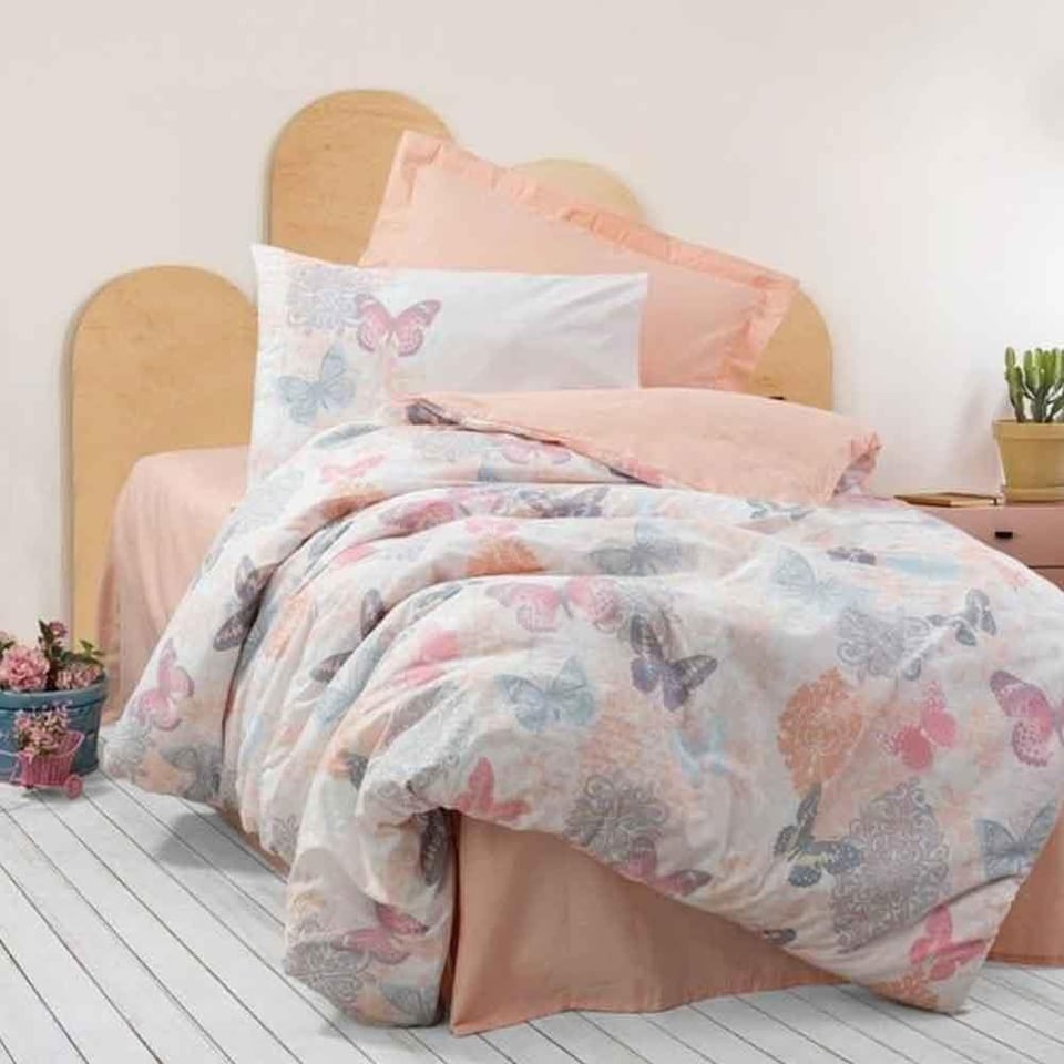 Genç Odası Tek Kişilik Lastikli Çarşaflı Nevresim Takımı Kimela Pembe (Ç0058022)