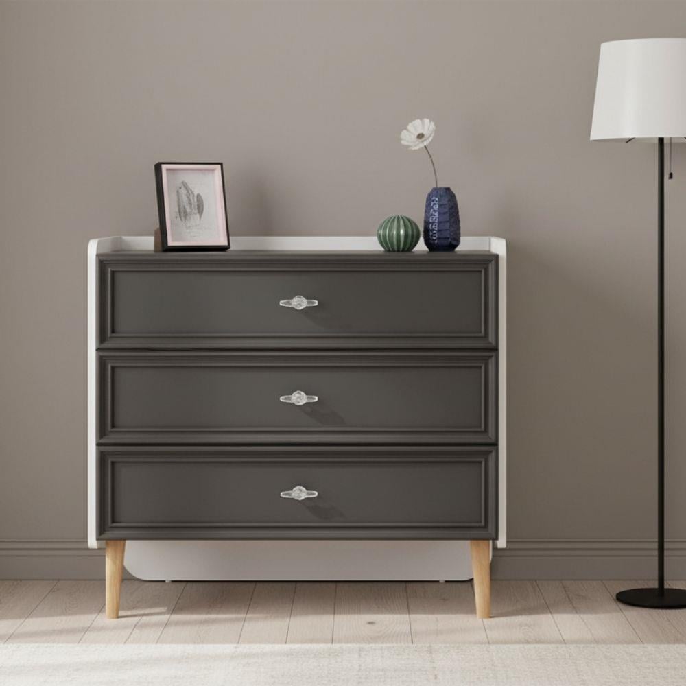 Ürünün yüzeyinde kullanılan doğal melamin kaplama, çizilmelere ve lekelere karşı dayanıklılık sağlarken, şifonyere doğal bir görünüm kazandırır. Ana malzeme olarak tercih edilen yonga levha, hem çevre dostu hem de sağlam bir yapı sunar.